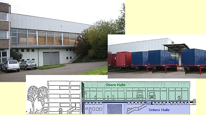 Zwei Hallengeschossflächen mit jeweils 1.200 qm Grundfläche bieten variable Nutzungsmöglichkeiten für Produktion, Lagerung oder Verkauf. Untere Halle Obere Halle